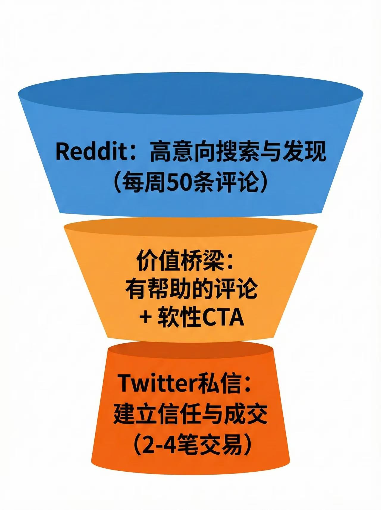 当用户在 Reddit 回复 “Please send it” 或直接去 Twitter 找你时,即使还没成交,你已经赢了 80%。因为他完成了跨平台的动作,沉没成本增加,信任感倍增。